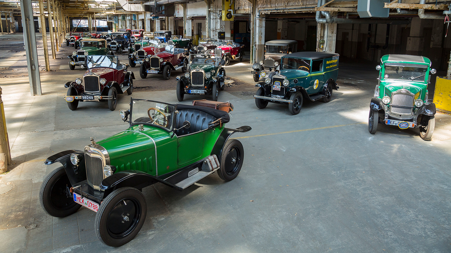 Glorious view Various Opel 4 PS models congregate in the “Altwerk”.