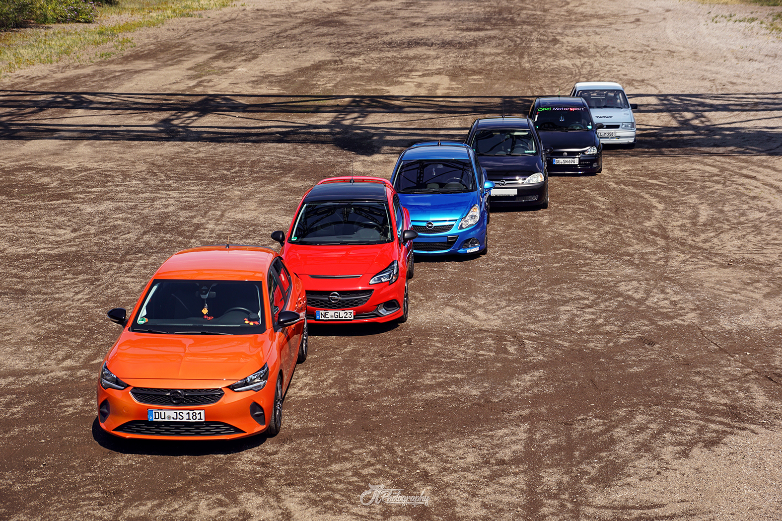 Pünktlich um 13 Uhr standen sie also auf dem ehemaligen Zechengelände Spalier: Sechs Generationen Opel Corsa – von A bis F. Der Corsa D war sogar in doppelter Ausführung angereist. Und Justin Catrin Kussin durfte ihre Kreativität ausleben, zu der Opel sie wie keine andere Marke inspiriert. Die Modelle aus sechs Generationen wurden mal im Halbkreis, mal fächerförmig positioniert. Mal hintereinander, mal nur auf die Scheinwerfer fokussiert. Entstanden sich tolle Aufnahmen des Bestsellers.