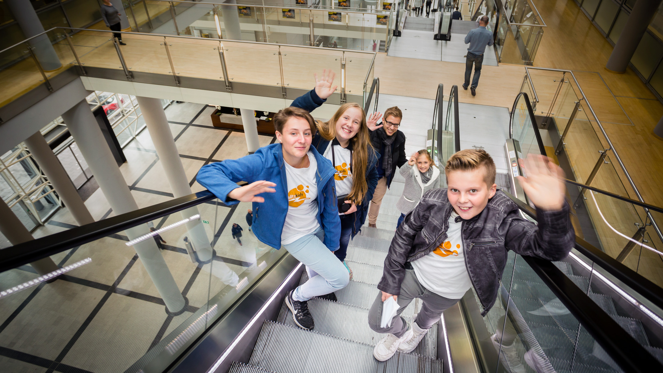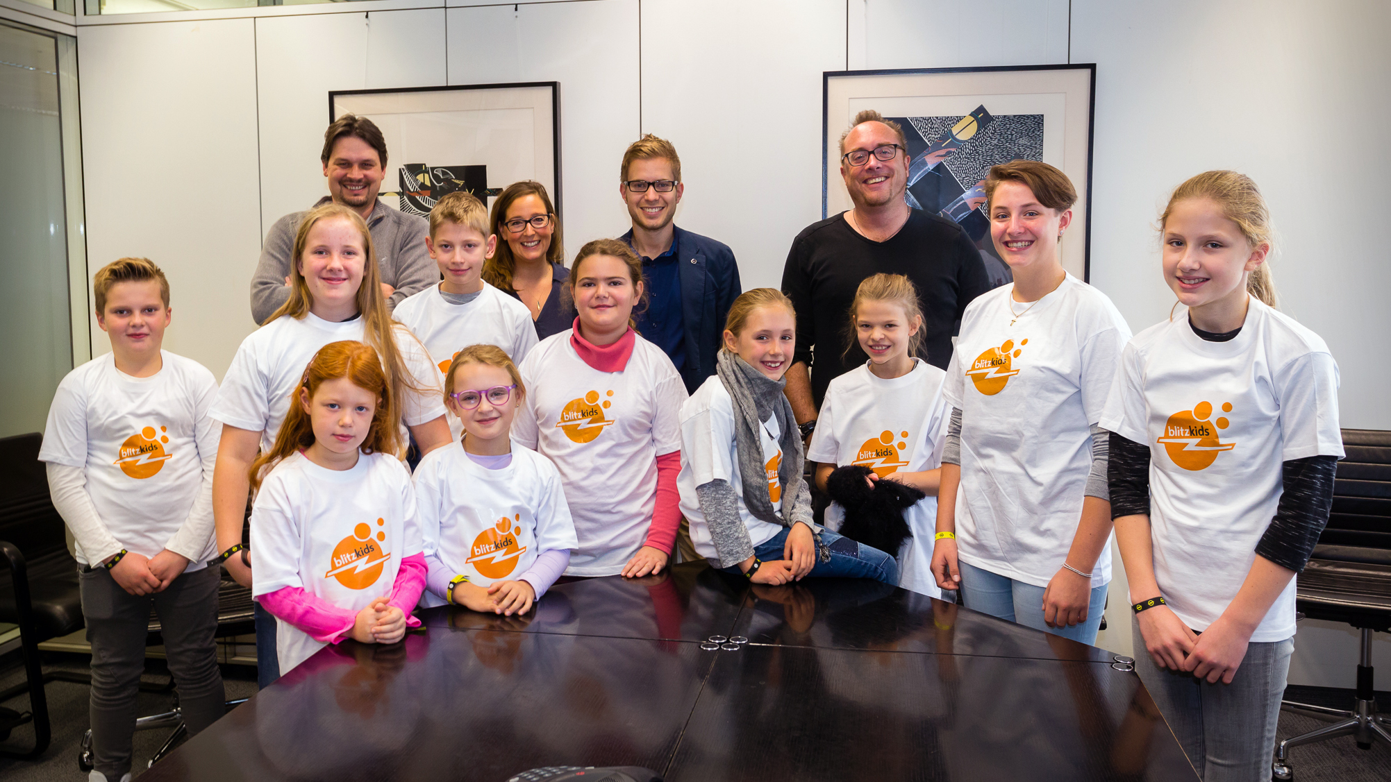 Bereit: Die Reporter versammeln sich im Foyer der Unternehmenszentrale um die Schwarze Witwe, bevor jedes Team zu seinem Termin ausschwärmt.