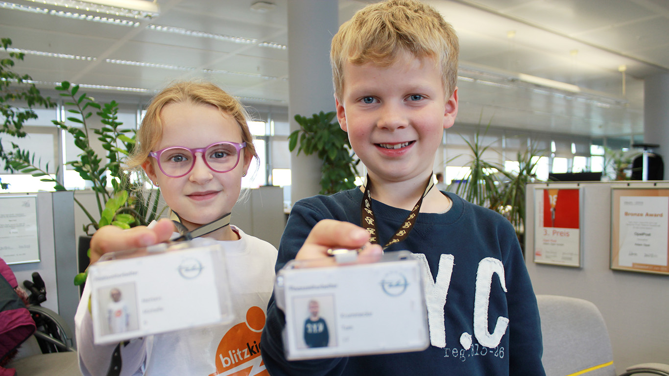 Kindertag@Opel! Wir dürfen unsere Eltern an die Arbeit begleiten. Wir haben uns beim Opel Post-Workshop angemeldet. Als echte Reporter dürfen wir über den besonderen Tag berichten. In der Redaktionskonferenz sagen uns die erwachsenen Opel Post-Redakteure, dass wir gleich bei unserem Termin ganz viele Fragen stellen sollen. Das machen wir!