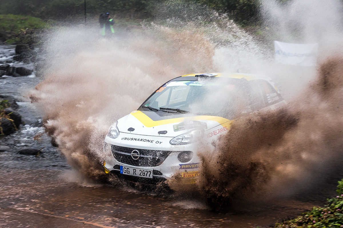 - Lauf 1, Azoren/Portugal (Schotter) Im ersten Lauf der FIA ERC Junior U27 auf den Azoren fliegen im Duell der Opel-Werkspiloten Chris Ingram und Jari Huttunen Schottersteine – und Wassermassen. Leider strandet der Finne mit seinem ADAM R2 500 Meter vor dem Ziel mit einem Problem an der Kraftübertragung.