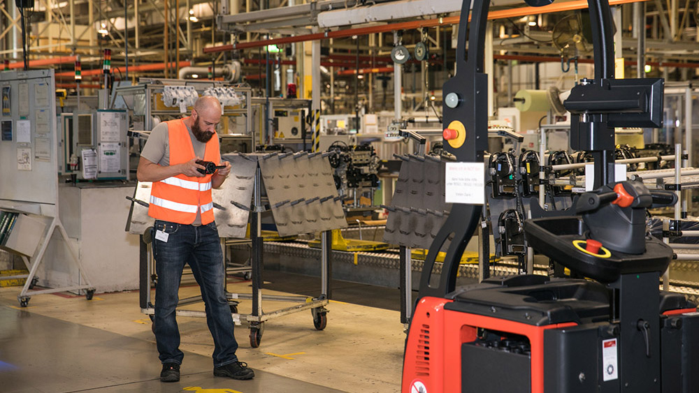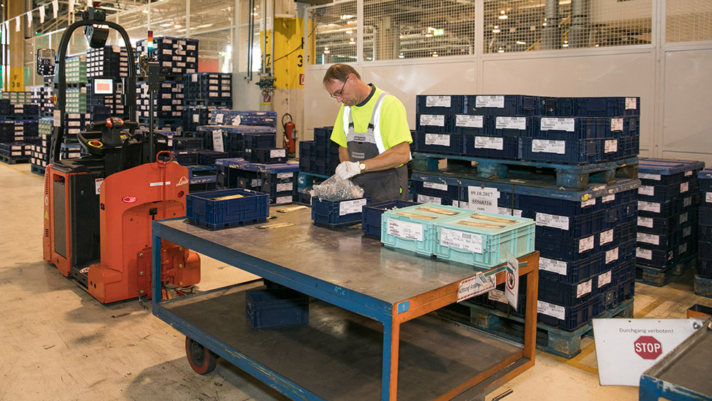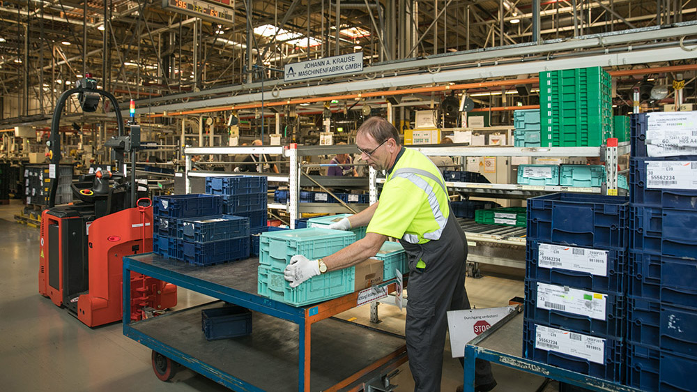 - Reinhold Stadler/Material Handling Motorbau beim KLT-Entladen in der Linie.