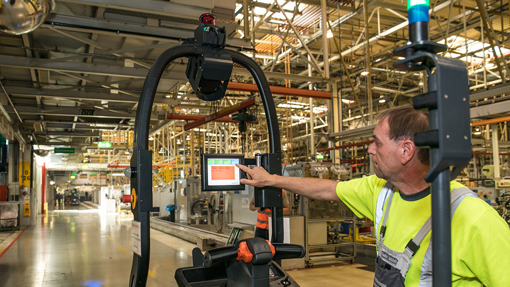 „Jedes der Fahrzeuge hat eine virtuelle Landkarte des Werks eingespeichert. Dazu wurden vorher alle Routen und die Konturen der Fahrwege erfasst“, erklärt Katrin Grandl/Leiterin Material Handling. In der virtuellen Landkarte wurden die Routen der Loops eingegeben, damit sie sich im Betrieb mit einem einfachen Tastendruck abrufen lassen; zum Beispiel mit der Wahl „F 17 Süd“. Als nächstes muss der Logistiker vor jeder automatisierten Fahrt einen Sicherheitscheck machen, bevor er mit Drücken der „Auftragstaste“ den AGT auf Tour schickt.