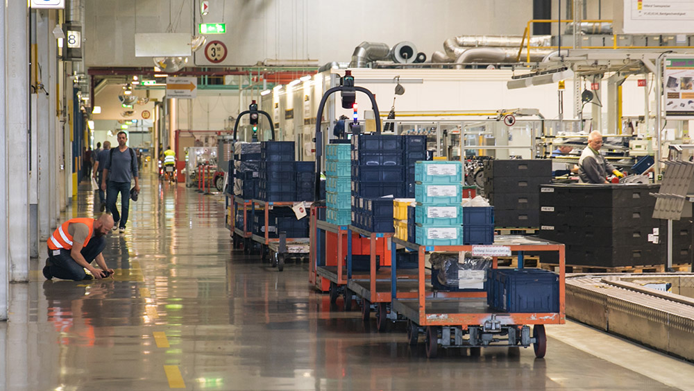 Fuhren früher die Logistiker mit ihren E-Schleppern stündlich ihre Loops, um Kleinteile anzustellen, so fahren nun Tom Turbo & Co. völlig allein und bringen das Material in die Linie. In der Linie und im Kleinteile-Lager warten je ein Logistiker, um den AGT anhand der Angaben auf den Kanban-Karten mit KLT/Kleinlastenträgern zu beladen bzw. seine Ladung in der Linie in Empfang zu nehmen und das Fahrzeug mit neuen Kanban-Karten für die nächsten Transporte zu versehen.