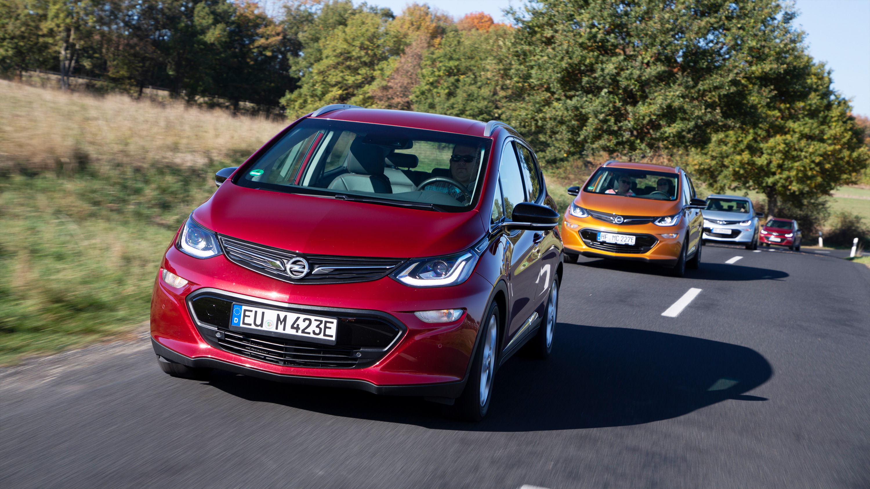 Enge und langgezogene Kurven, schöne Bergauf- und Bergab-Passagen, dazu reizvolle Blicke in die Landschaft. Die sanften Hügel rund um die Wasserkuppe waren wie gemacht für diese besondere Ausfahrt: E-Enthusiasten aus Deutschland, Österreich und der Schweiz haben sich rund um Fulda zum ersten Ampera-e-Treffen verabredet. Und so glitten 17 Opel-Stromer bei schönstem spätherbstlichen Wetter über die hügelige Landschaft der Rhön.