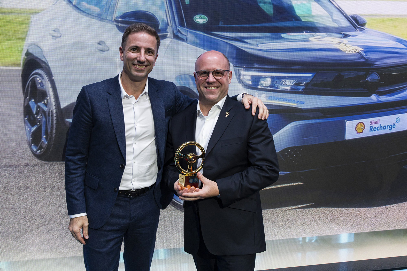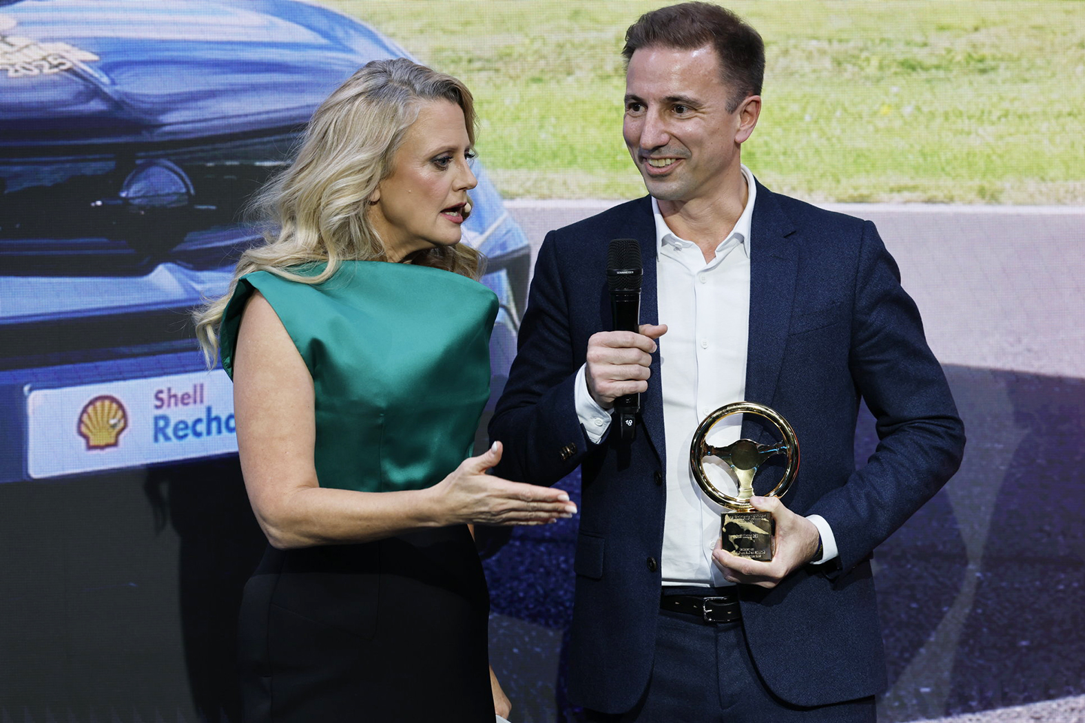 Damit ist der Auftakt der Verleihung gesetzt – sportlich, emotional, direkt. Der Opel Mokka GSE ist der erste Preisträger dieses Abends. Die erste Marke, die jubeln darf. Die erste Geschichte, die geschrieben wird. Huettl nimmt das Lenkrad entgegen und sagt mit Stolz: „Der Preis ist eine Riesen-Anerkennung für das gesamte Team.“
