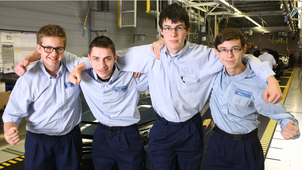- Widać po nich, że w Oplu się odnaleźli. Od lewej praktykanci: Jakub Dębicki, Dominik Piontek, Robert Głowacki i Denis Krawczyk.