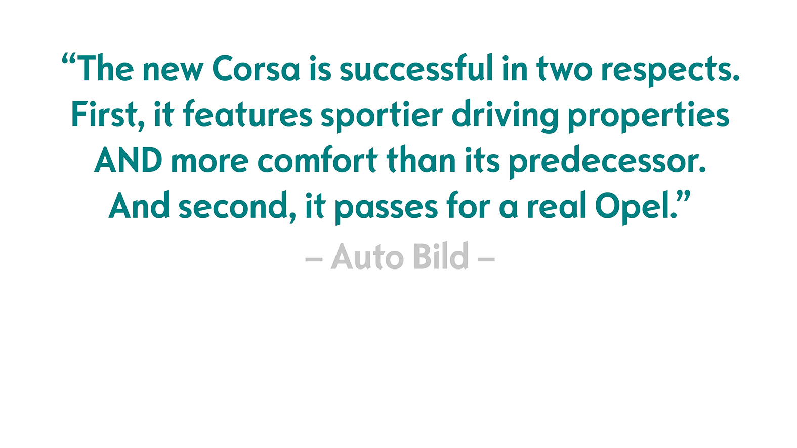 The results of the first test drives were correspondingly positive, which was also reflected in the media’s response. Trade magazine auto motor und sport came to the following conclusion: “This new one is zestful, smart, trim, and trendy. With modern technology, and no nonsense. It’s simply Opel.” Auto Bild finds the new vehicle “successful in two respects. First, it features sportier driving properties AND more comfort than its predecessor. And second, it passes for a real Opel.” (see also Press Reviews.)