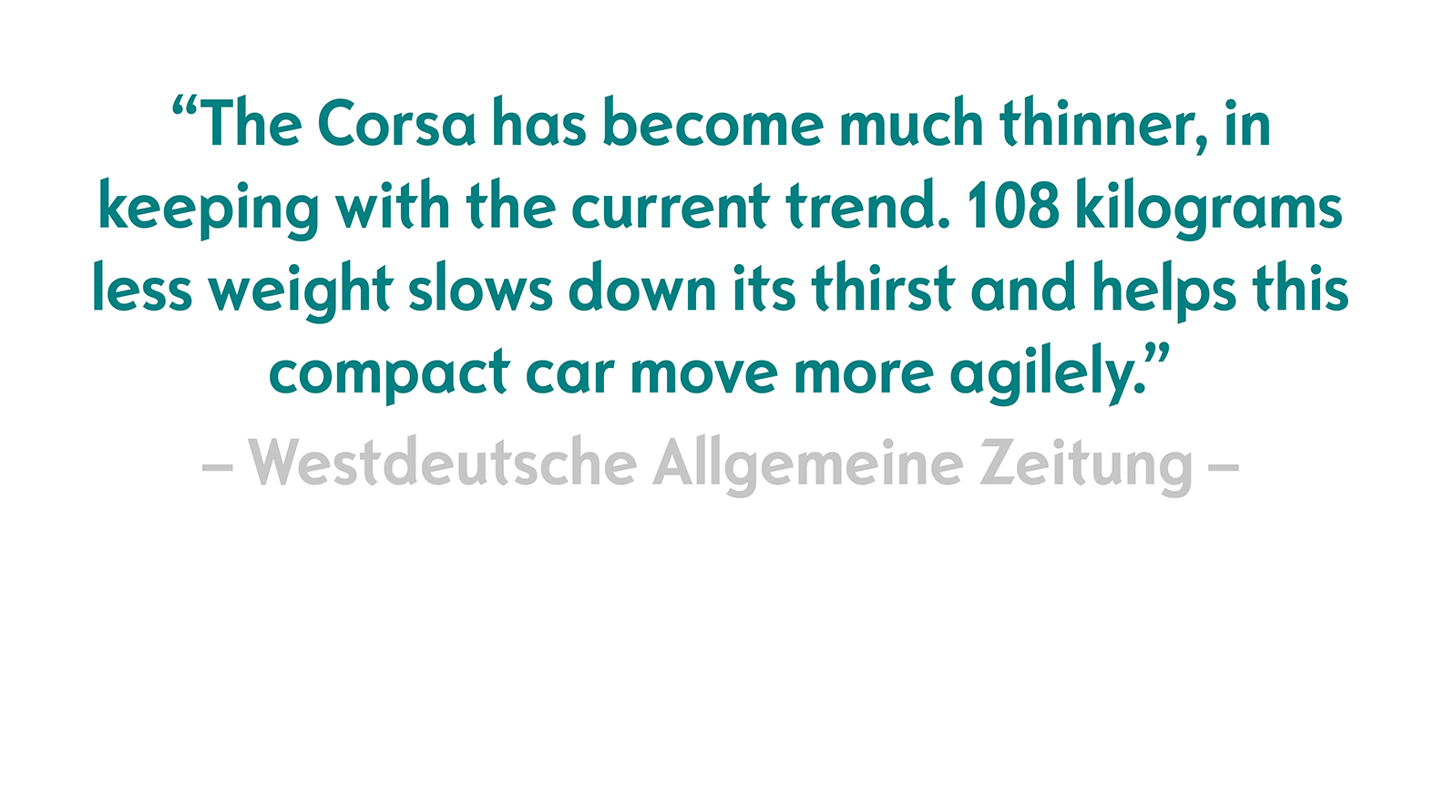 The lightweight construction throughout is another equally positive attribute – after all, the new model weighs only 980 kilograms in its lightest version, which is 108 kilograms lighter than its predecessor. According to Thomas Wanke: “This is another reason why the Corsa is so agile and dynamic – and thanks to the new range of engines, we have also significantly increased fuel economy.”