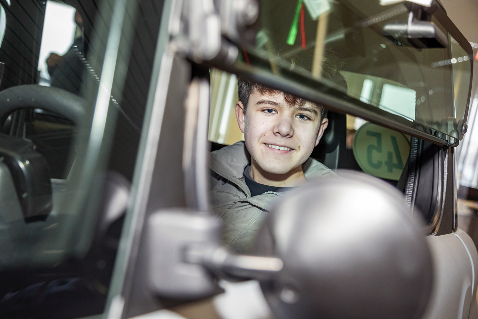 Oskar Passek, 15, sitzt Probe im Opel Rocks – sein Weihnachtswunsch.