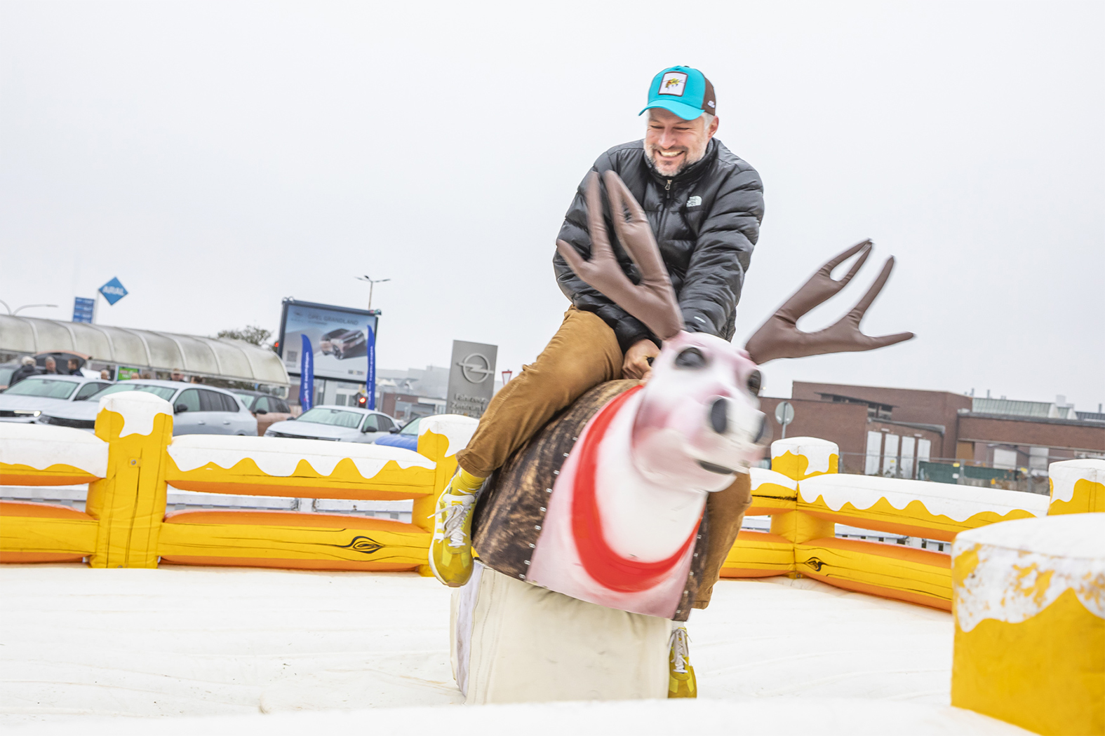 Spaß auch für die Erwachsenen: Auf dem mechanischen Rentier hält kaum jemand lange durch.
