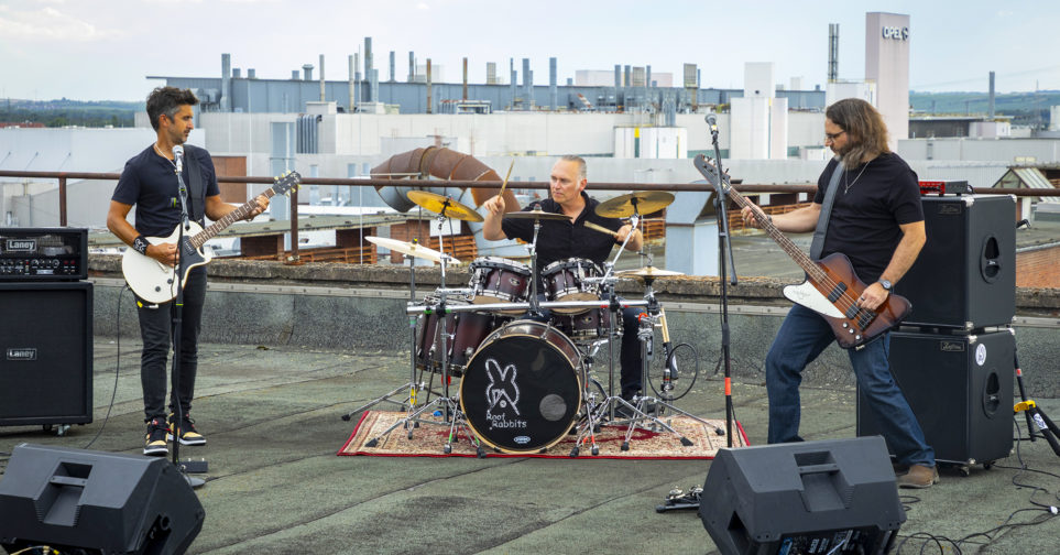 Drei Musiker, ein Traum: Die Roof Rabbits drehen ihr neues Musikvideo im Herzen des Opel-Werksgeländes.