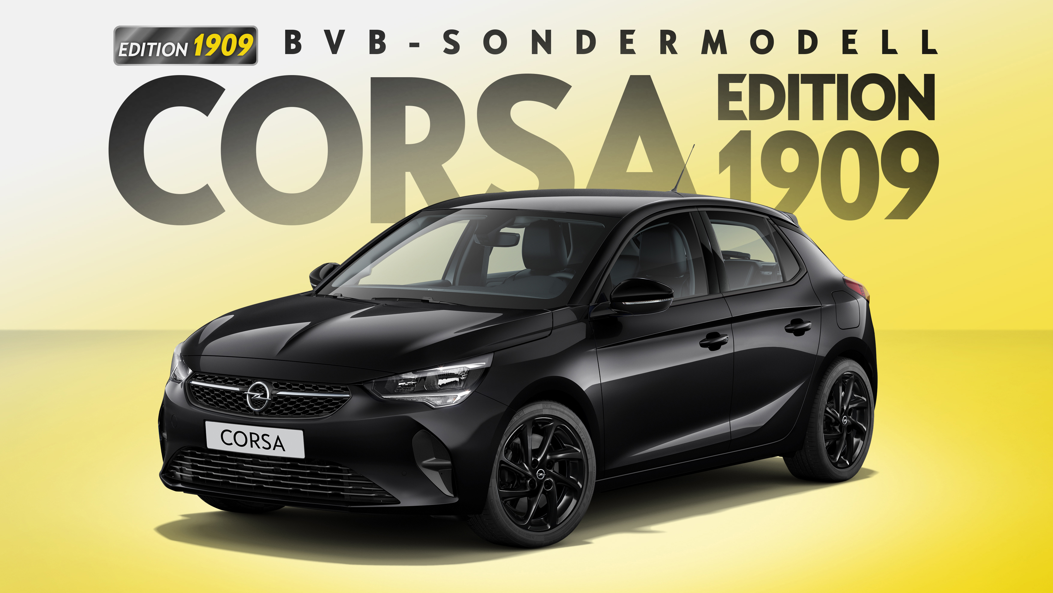 Gerade erst hat der neue Opel Corsa seine Händlerpremiere gefeiert, schon steht der Newcomer als exklusives Sondermodell Corsa „Edition 1909“ in den Startlöchern. Damit setzt Opel zum Abschluss des Jubiläumsjahres für BVB-Fans ein weiteres Highlight. Schließlich haben Opel und Borussia Dortmund in den vergangenen Monaten „120 Jahre Automobilbau“ sowie „110 Jahre Fußball“ feiern können. Da passt das neue Sondermodell perfekt. Der Opel Corsa „Edition 1909“ fährt sportlich-elegant ganz in Schwarz vor – Technologie- und Fan-Highlights wie ein spezielles BVB-Paket inklusive.