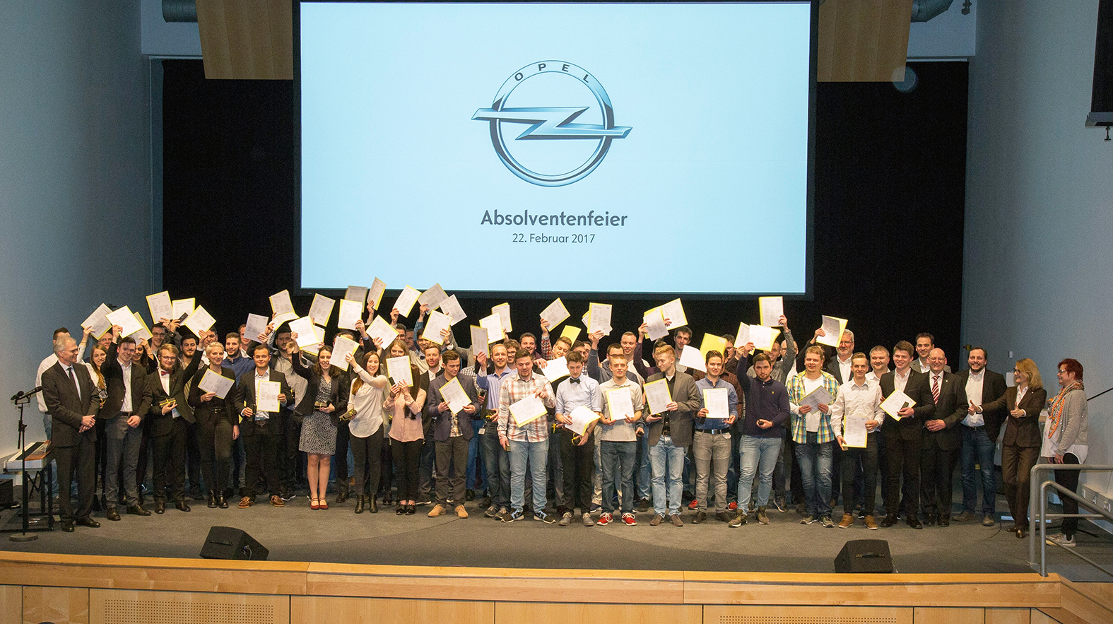 Den Höhepunkt der feierlichen Veranstaltung, zu der auch Familienangehörige der Absolventen geladen waren, bildete die Zeugnisübergabe. Zum angemessenen Ambiente trug auch der Chor „Swingles“ der Rüsselsheimer Immanuel-Kant-Schule bei. Die aktuellen Opel-Auslerner stehen in einer langen Tradition: Vor 151 Jahren hatte der erste Lehrling seine Ausbildung bei Opel in Rüsselsheim begonnen. Ihm folgten seitdem mehr als 25.000 junge Frauen und Männer. Derzeit sind unternehmensweit 750 Azubis beschäftigt – davon allein am Stammsitz in Rüsselsheim mehr als 500.