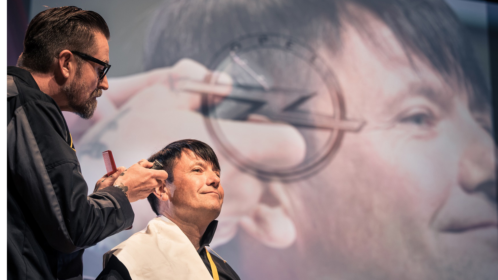 A promise is a promise: After Opel’s market shares in Finland reached 6.05 % for the period January to July a barber came on the stage during a big dealer event for MOKKA X, Opel OnStar and the new Zafira during Kittilä’s opening speech and cut the Opel logo into his hair.